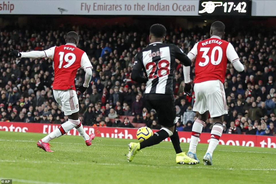3 phút sau bàn thắng của Aubameyang, đến lượt Nicolas Pepe nhân đôi cách biệt bằng pha dứt điểm cận thành.