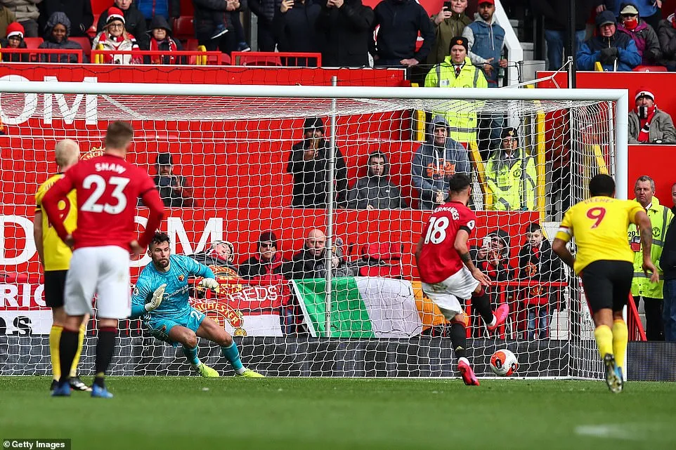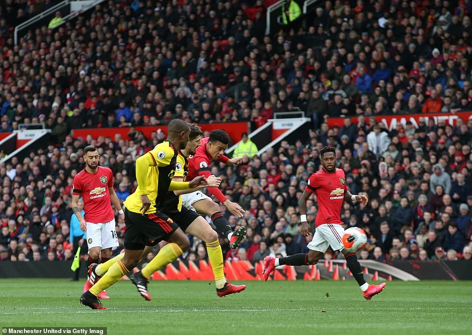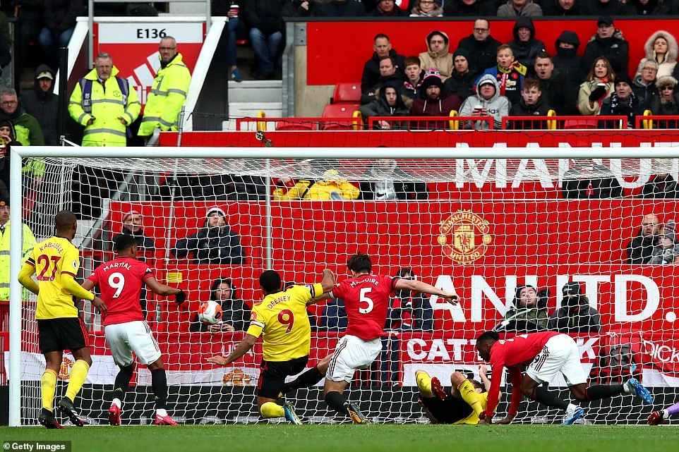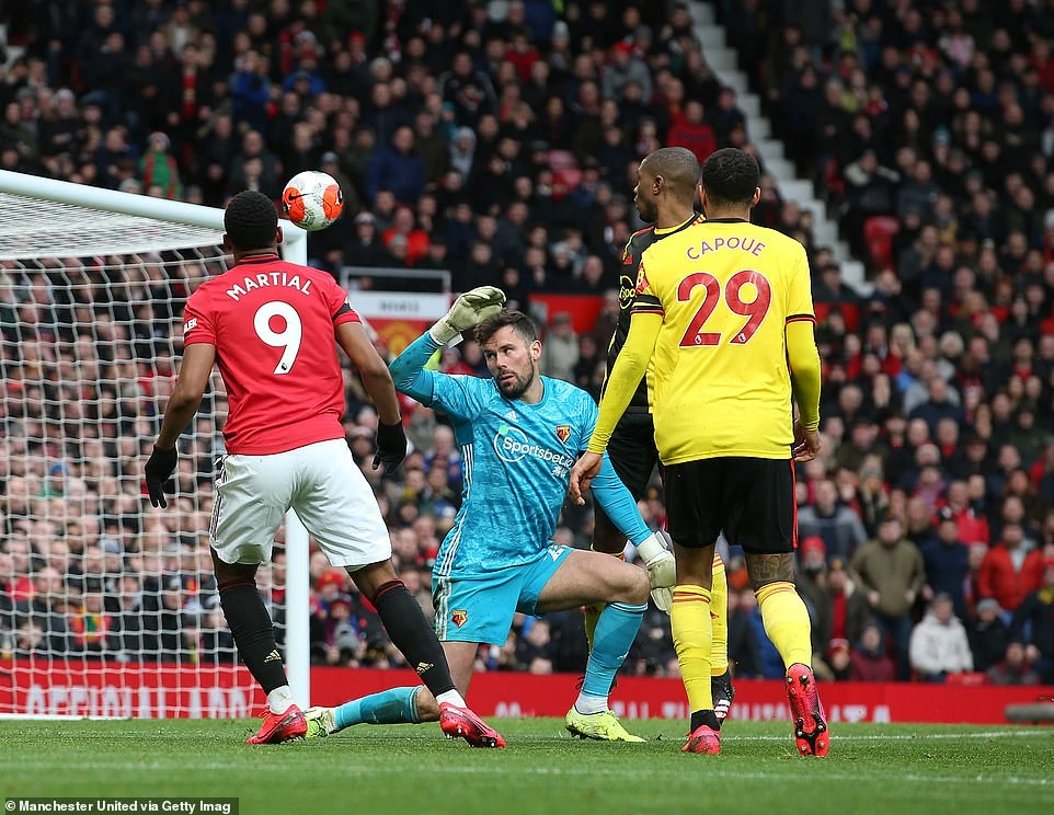 Troy Deeney đệm bóng cận thành làm rung lưới MU ở phút 53 nhưng bàn thắng không được công nhận.