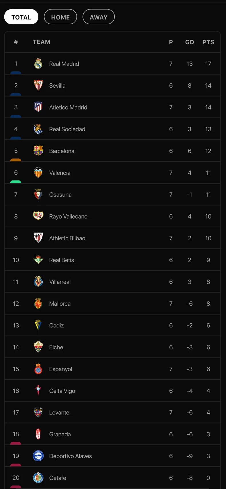 Giành chiến thắng 3-0 trước Levante, Barcelona có được vị trí thứ 5 với 12 điểm sau 6 vòng đấu. Tại vòng 7 La Liga, Real Madrid hòa 0-0 với Villarreal nhưng vẫn giữ ngôi đầu với 17 điểm, ĐKVĐ Atletico Madrid nhận trận thua bất ngờ với tỷ số 0-1 trên sân của Alaves và có vị trí thứ 3.