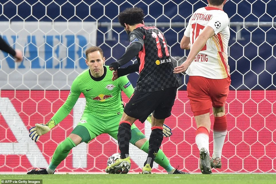 Salah trừng phạt sai lầm nơi hàng thủ của Leipzig bằng bàn thắng mở tỷ số. Ảnh: Getty Images.