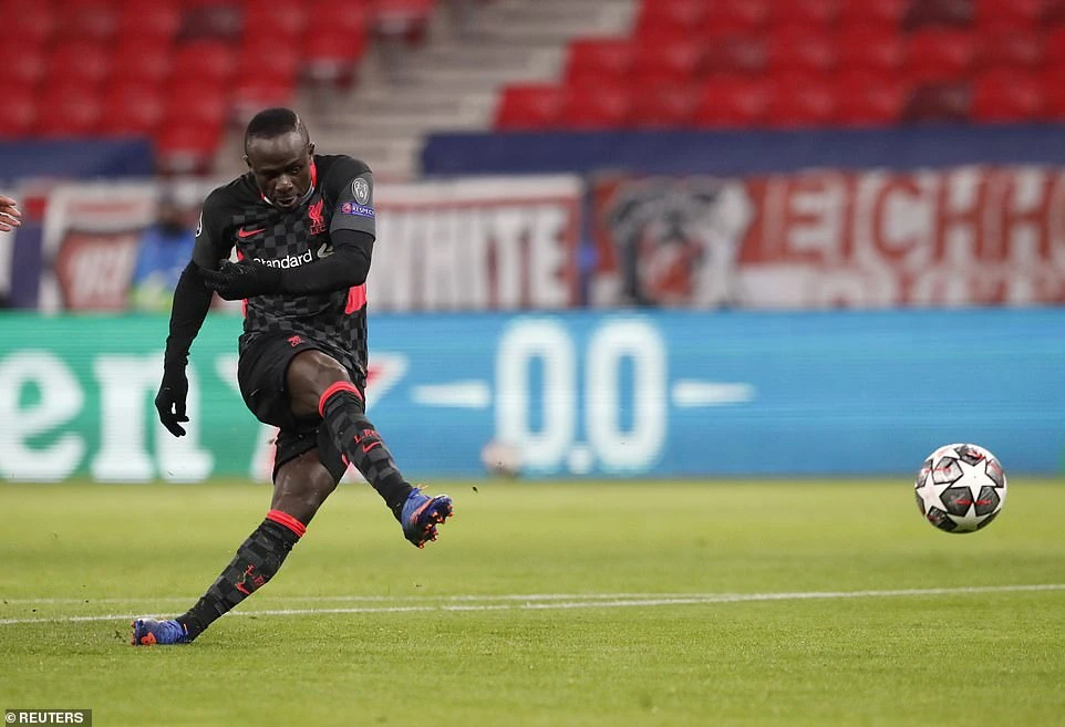 Bốn phút sau đến lượt Mane ghi bàn cũng trong tư thế đối diện thủ môn Gulacsi. Ảnh: Reuters.