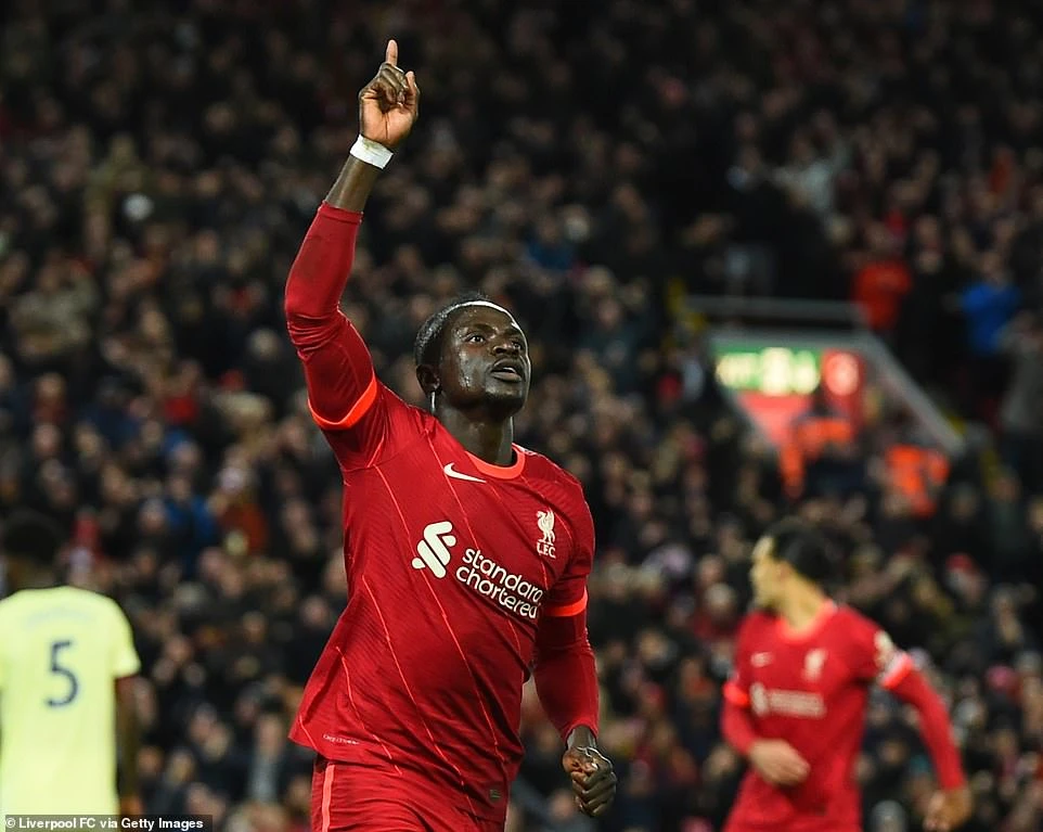 Mane đánh đầu ghi bàn thắng duy nhất trong hiệp một cho Liverpool. Ảnh: Getty Images.