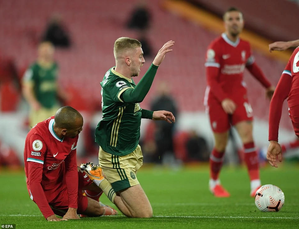 Thoát được bàn thua, Sheffield United bất ngờ có được bàn thắng vươn lên dẫn trước ở phút 11 trên chấm 11 mét. Fabinho xoạc bóng phạm lỗi với tiền đạo Oliver Mc Burnie, trước rìa vòng cấm. Trên chấm phạt đền, tiền vệ Sander Berge dễ dàng đánh bại thủ môn Alisson để giúp Sheffield United mở tỉ số cho trận đấu.