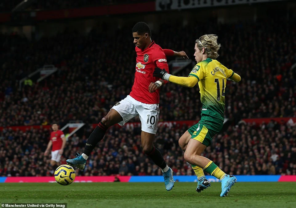 Thậm chí phút cuối hiệp một, Man. United suýt bị Norwich City gỡ hoà khi đội khách có được tình huống phản công sau pha cướp bóng giữa sân. Cầu thủ chạy cánh Todd Cantwell, có pha đặt lòng trong vòng cấm, nhưng thủ môn De Gea đã kịp đổ người để giúp M.U khép lại hiệp một với lợi thế dẫn trước 1-0.