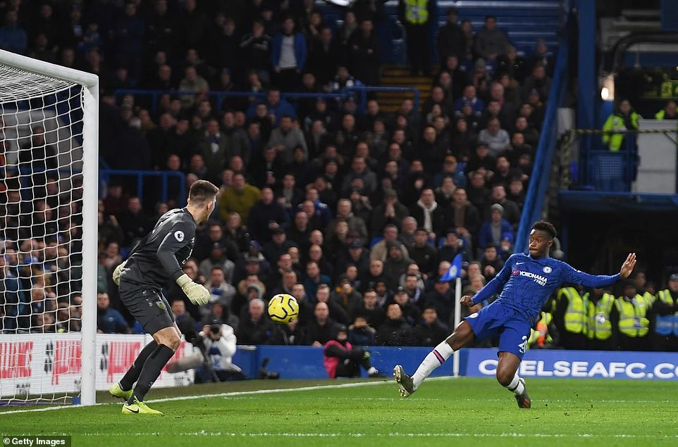 Phút 49, đội trưởng Azpilicueta có pha tạt bóng bên cánh trái vào vòng cấm, tuy Abraham đánh đầu không trúng bóng, nhưng Hudson-Odoi lại dễ dàng ghi tên mình lên bảng điện tử bằng pha đệm bóng cận thành.