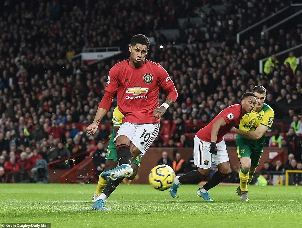 Trên chấm 11 mét, tiền đạo Rashford không bỏ lỡ cơ hội để lập cú đúp cho mình giúp Man. United dẫn trước 2-0.