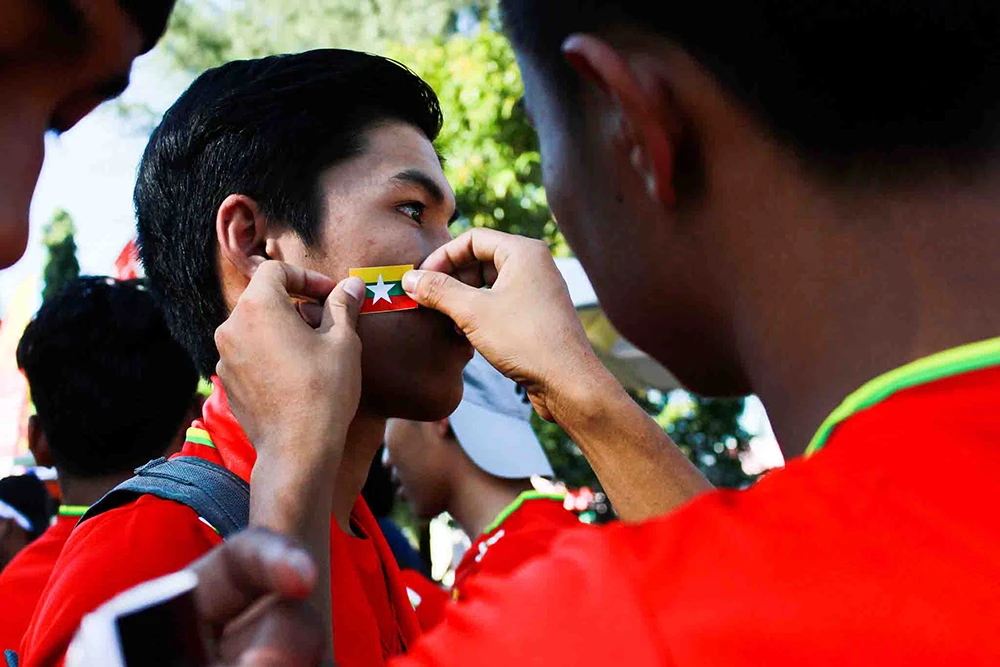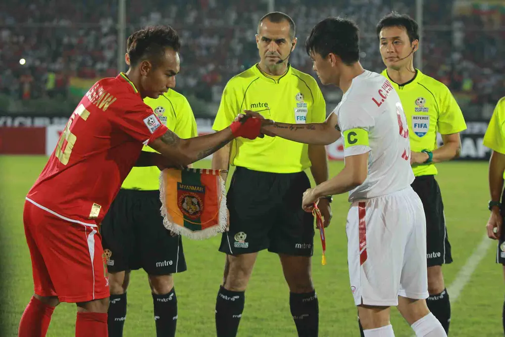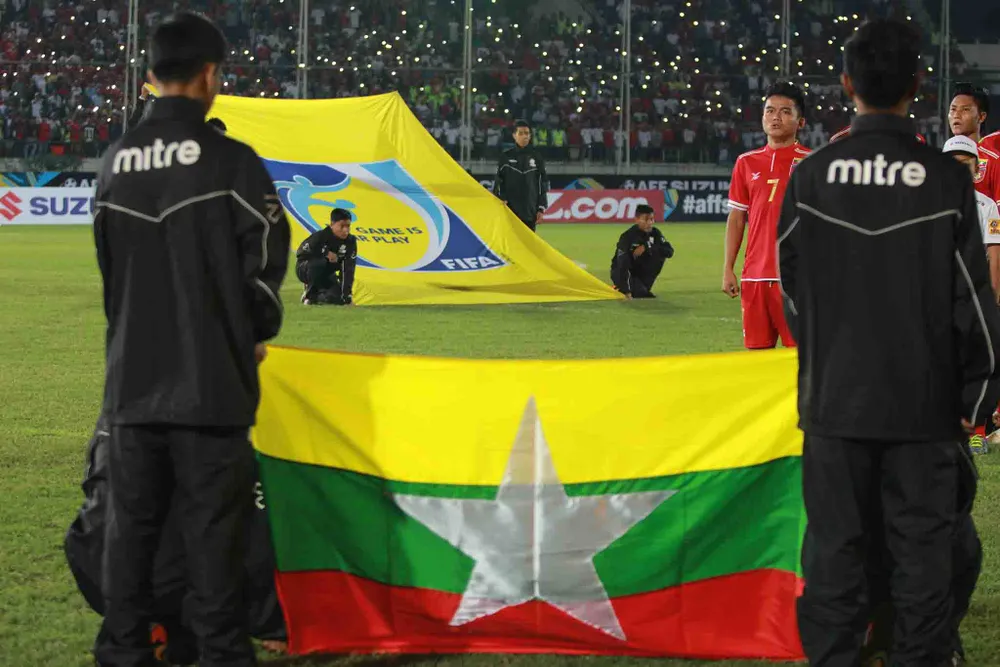 Sau khi dâng cao đội hình gây sức ép và có được bàn thắng san bằng tỉ số, các cầu thủ Myanmar đang thi đấu rất hưng phấn. Họ không ngại áp sát cũng như đá rắn, phạm lỗi để tranh cướp bóng.