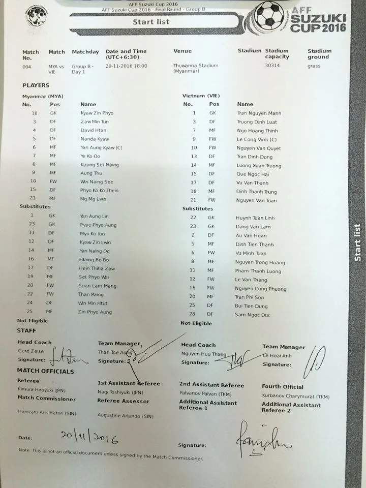 Trận đấu giữa Việt Nam và chủ nhà Myanmar tại bảng B AFF Suzuki Cup 2016 sẽ diễn ra vào lúc 18h30 (20/11) trên sân vận động Thuwunna.