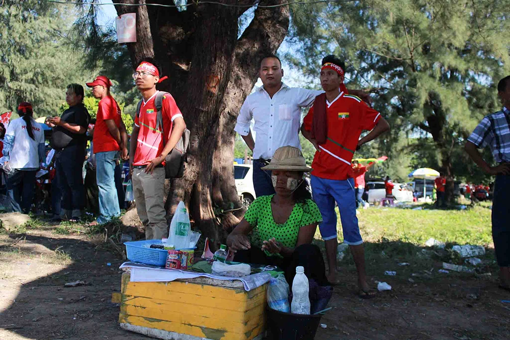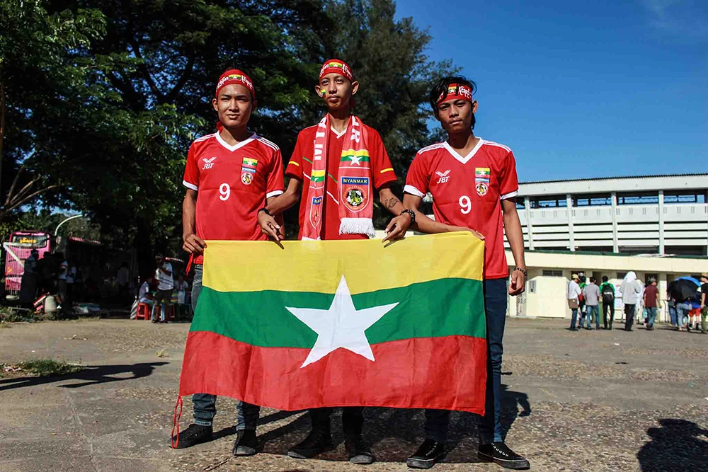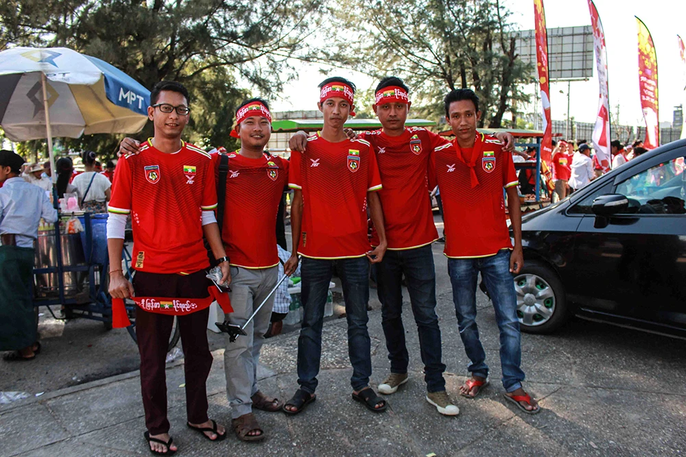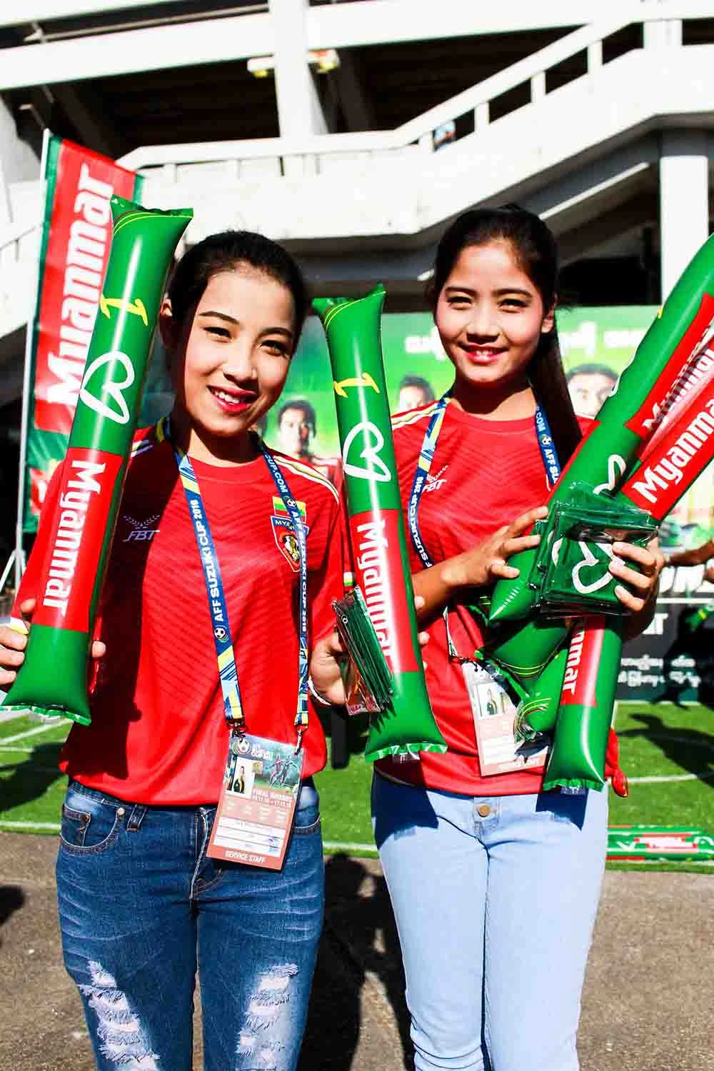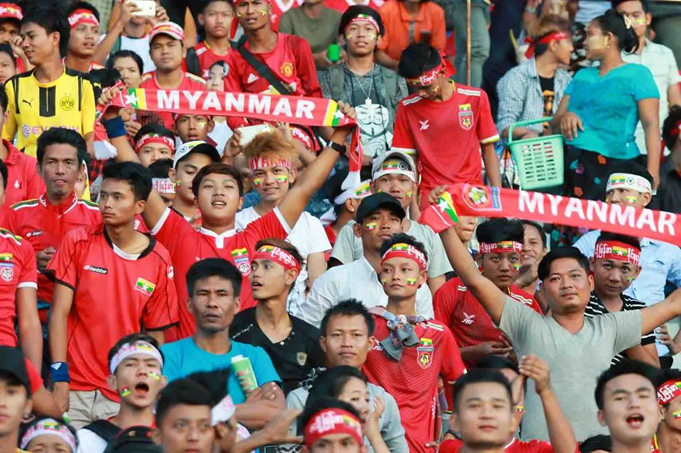 Các CĐv Myanmar đến sân từ rất sớm để cổ vũ cho đội nhà. Ảnh: PHẠM HUY