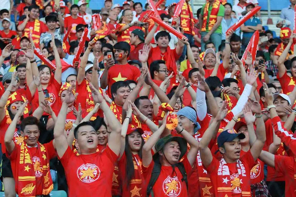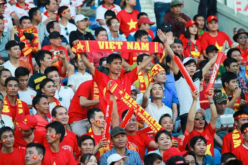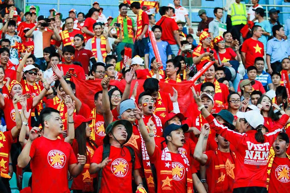 Người hâm mộ Việt Nam vui mừng trước chiến thắng của các cầu thủ nhà. Ảnh: PHẠM HUY
