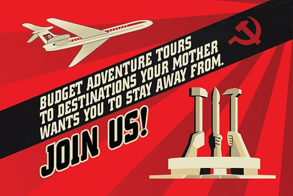 Một tấm áp phích về phương châm của công ty du lịch Young Pioneer Tours: "Ấp ủ những chuyến phiêu lưu tới những nơi mà mẹ bạn muốn bạn tránh xa. Hãy tham gia cùng chúng tôi!". Ảnh: Behance.net