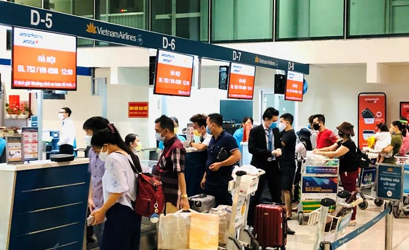 Khách bắt đầu nhộn nhịp tại các quầy thủ tục hãng bay. Ảnh: PHONG ĐIỀN