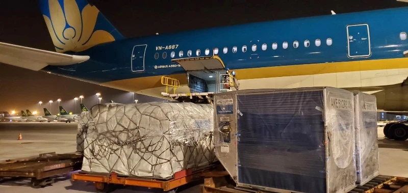 Bên cạnh hàng hóa phục vụ nền kinh tế và đời sống xã hội, các chuyến bay chở hàng của Vietnam Airlines còn vận chuyển hàng phục vụ chiến dịch phòng, chống dịch COVID-19 gồm khẩu trang y tế, trang phục chống dịch, trang thiết bị, vật tư y tế.