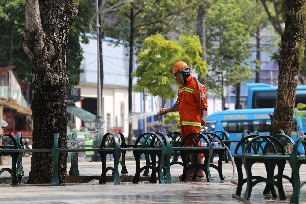 Công nhân tưới nước cho cây trong công viên mỗi ngày nhưng nhiều người dân lo ngại các cây cổ thụ còn lại sẽ cùng chung số phận với những cây đã chết khô.