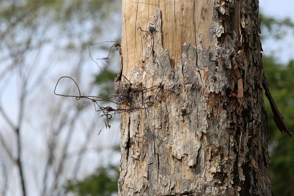Những cây cổ thụ rợp bóng mát lúc trước giờ chỉ còn lại cái xác khô.