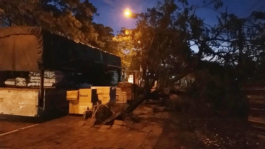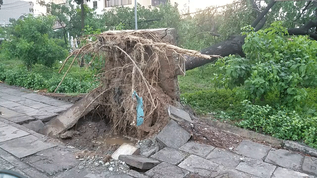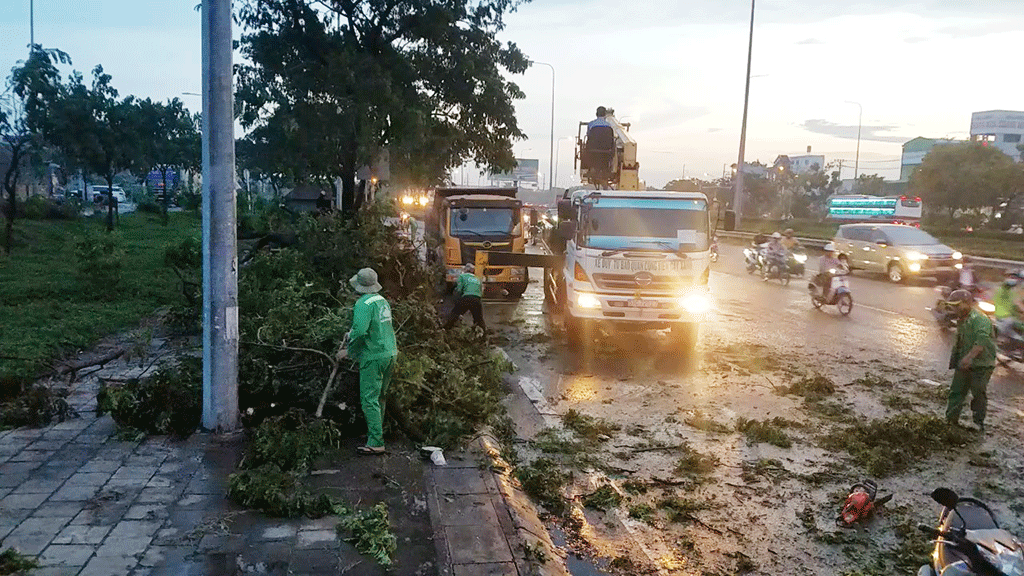 Các nhân viên công ty cây xanh sau đó có mặt cắt tỉa, xử lý hiện trường cây ngã tránh gây ùn ứ giao thông trên các tuyến đường.