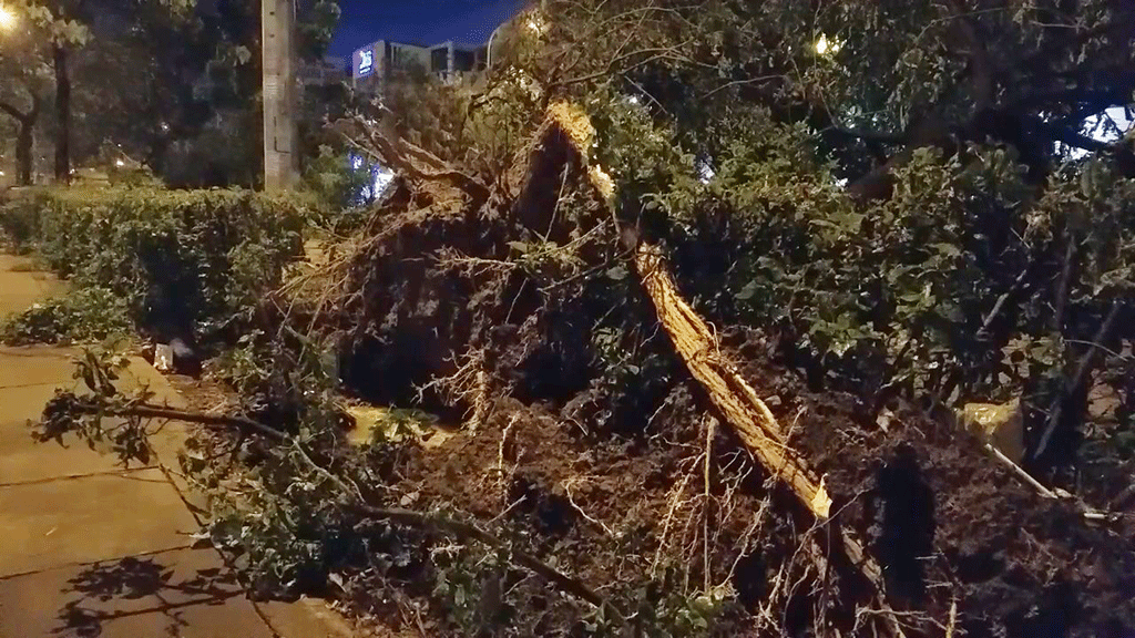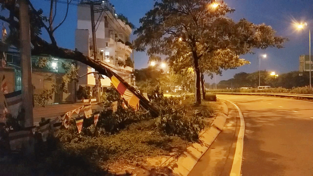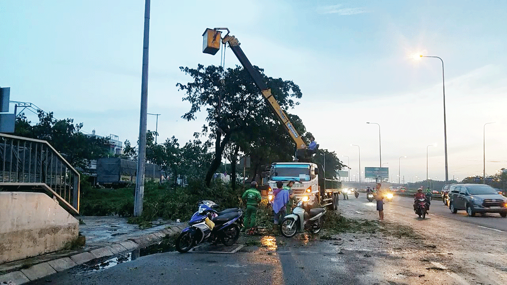 Theo ghi nhận, trận mưa gió vào khoảng 16 giờ chiều cùng ngày khiến hàng loạt cây xanh đường kính từ 20 đến 40cm, cao gần chục mét trồng ven hai bên tuyến đường quốc lộ 1 và đường song hành quốc lộ 1 từ vòng xoay An Lạc, quận Bình Tân đến đường Hưng Nhơn, huyện Bình Chánh ngã đổ hàng loạt.
