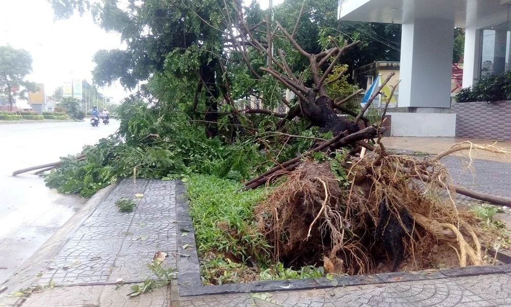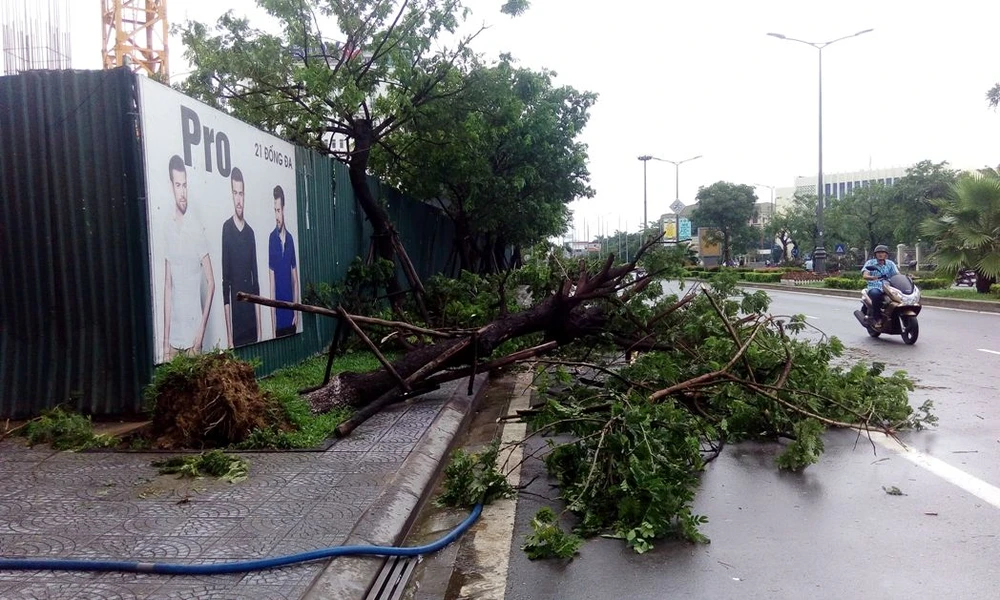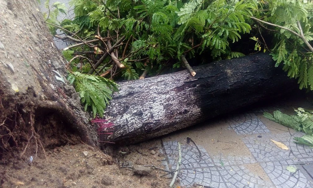 Cây bị quật gãy tại đường Đống Đa (TP. Huế).