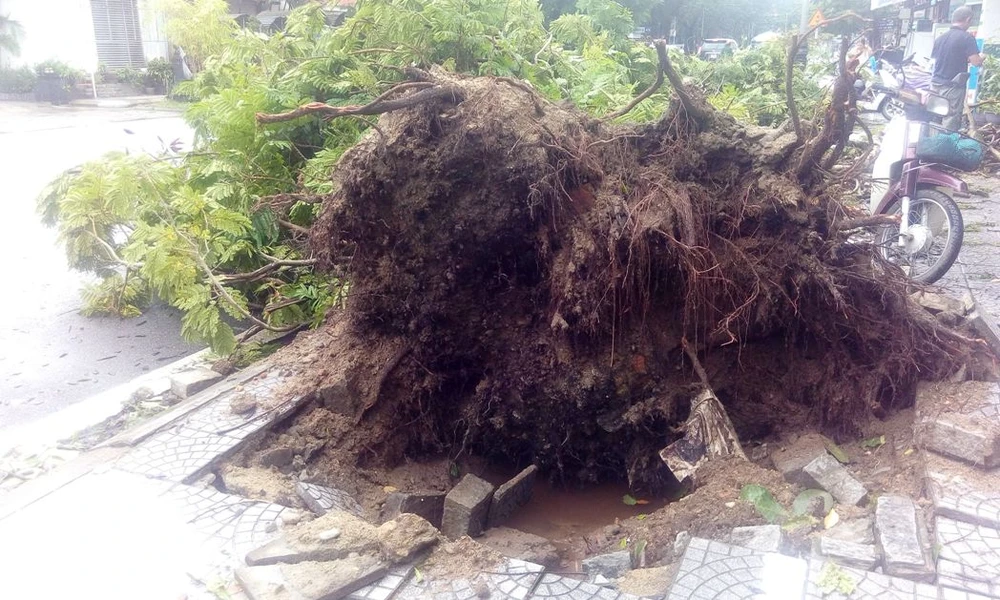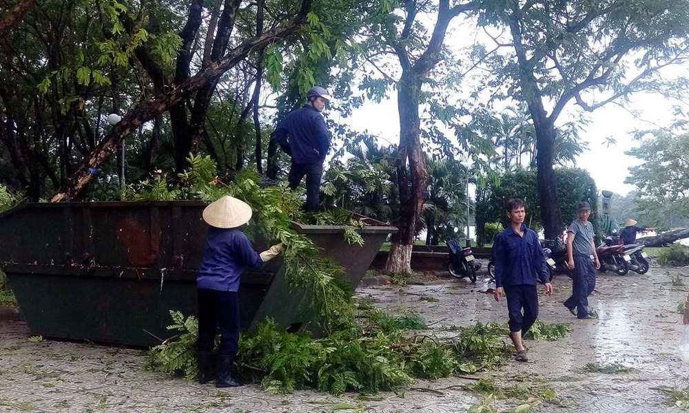 Chịu ảnh hưởng áp thấp nhiệt đới, từ đêm 13 đến sáng ngày 14-10, trên địa bàn TP Huế có mưa lớn và gió giật mạnh, khiến nhiều cây xanh tại các tuyến đường, công viên bị gãy đổ; một số tuyến đường bị ngập nước.