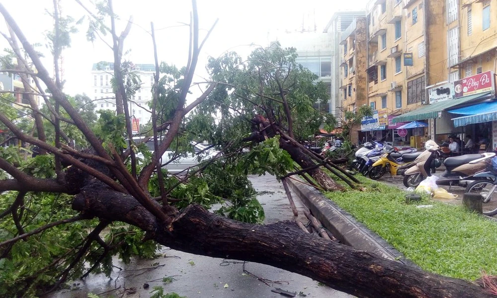 Ghi nhận vào sáng 14 tại đường Đống Đa, Nguyễn Huệ, Bà Triệu, Nguyễn Tri Phương …(TP. Huế) nhiều cây xanh ngã đổ bật gốc, nằm giữa đường, các cây xanh ngã xuống kéo theo dây điện gây nguy hiểm cho người dân.