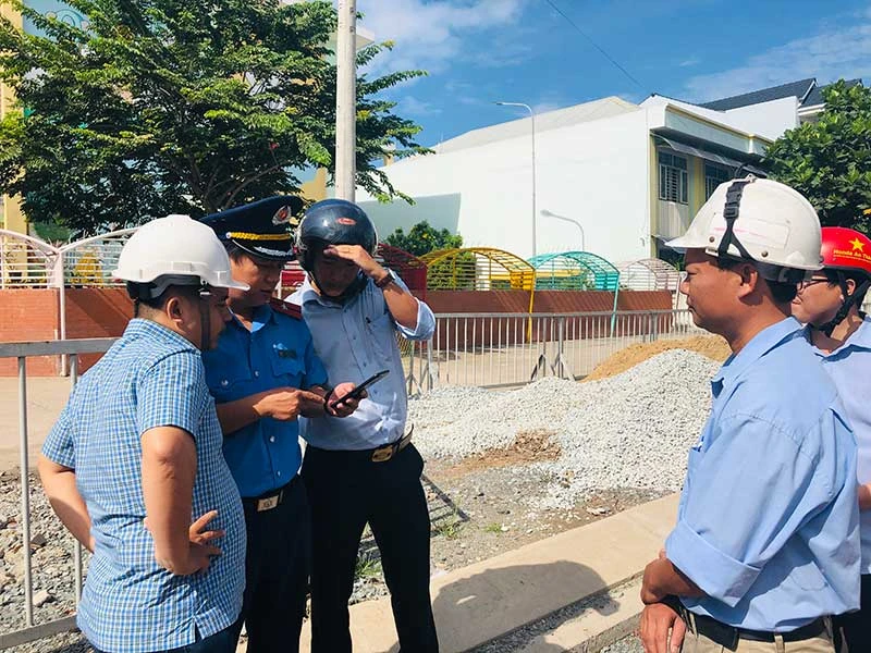 Đoàn kiểm tra liên ngành đang kiểm tra hiện trường công trình. Ảnh: ĐÀO TRANG