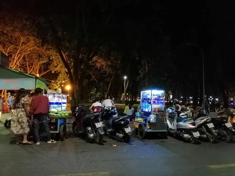 Cảnh mua bán ban đêm tại công viên Gia Định lại càng nhộn nhịp hơn, nam thanh nữ tú thường dạo chơi, ăn uống ở đây.