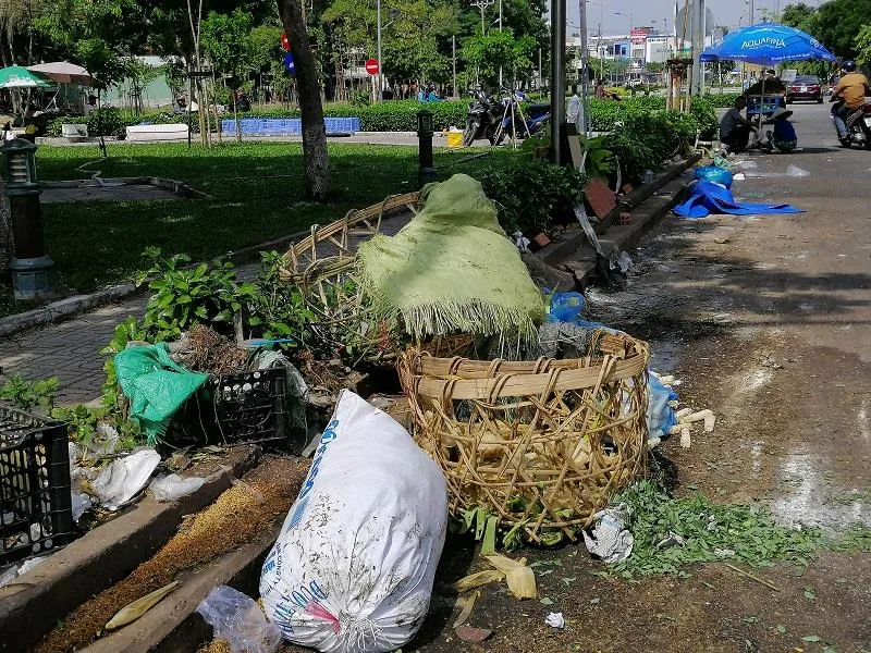 Rác thải bày tràn lan dọc tuyến đường Phạm Huy Thông, đặc biệt là phía khu chợ căn cứ K56.