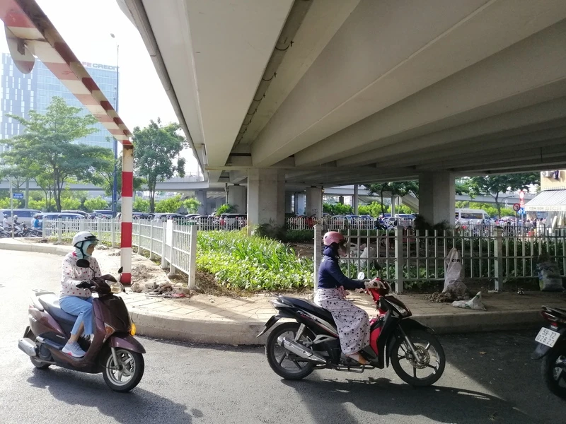 Đặc biệt là bãi giữ xe phía khu chợ Gạo, chợ Gà (cũng ở dưới dạ cầu Ông Lãnh nhưng bên phía đường Nguyễn Thái Học (quận 1) đã dẹp. Hệ thống cây xanh đang dần lấp đi bãi giữ xe lúc trước.