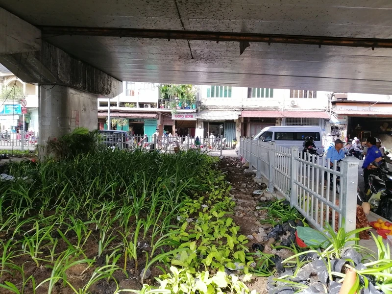 Theo ghi nhận của PV Pháp Luật TP.HCM vào sáng 18-10, một số dạ cầu lớn như Ông Lãnh (quận 1 và quận 4), Nguyễn Tri Phương (quận 5), Calmette (nối quận 1 với quận 4)… đã được cải tạo mảng cây xanh dưới dạ cầu.