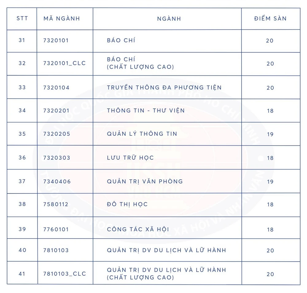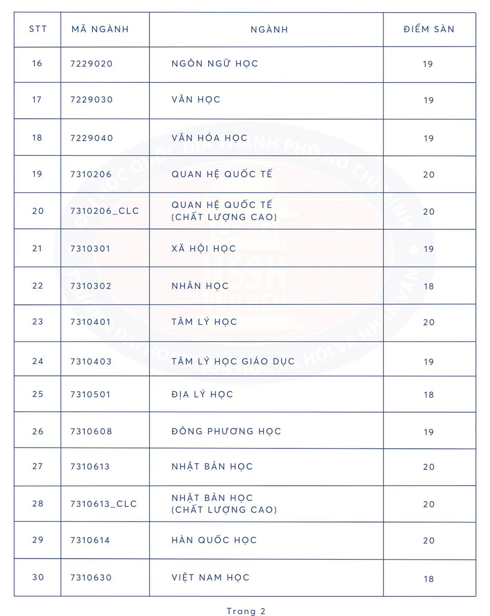 Cụ thể, tại Trường ĐH KHXH&NV, điểm sàn dao động từ 18-20 điểm. Trong đó, những nhóm ngành hot tiếp tục giữ mức sàn cao nhất như báo chí, quan hệ quốc tế, quản trị du lịch và lữ hành, Nhật Bản học, Hàn Quốc học, tâm lý học, ngôn ngữ Anh.