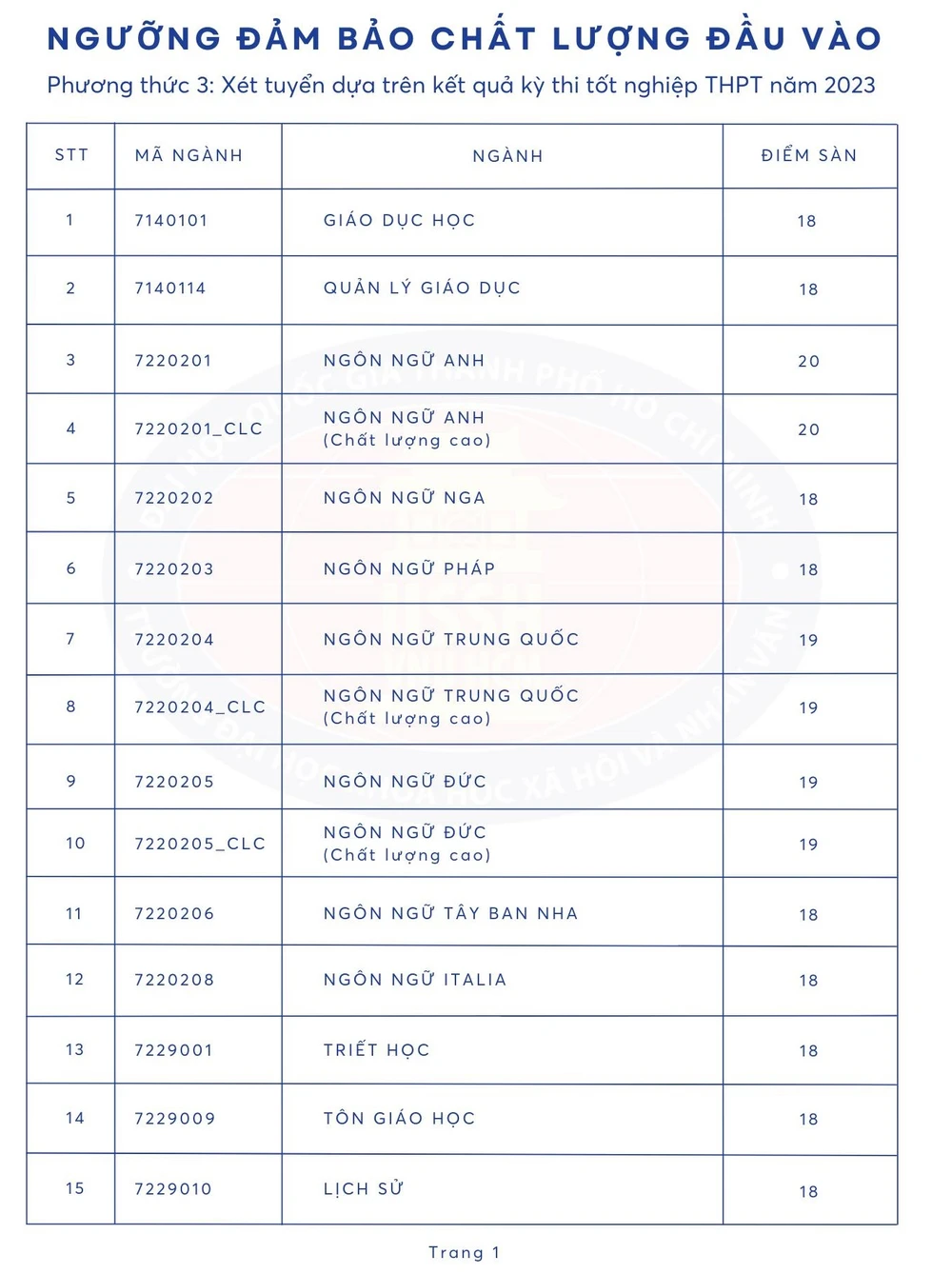 Cũng đợt này, Trường ĐH Mở TP.HCM đã công bố điểm sàn năm 2023 theo phương thức xét tuyển sử dụng điểm thi tốt nghiệp THPT.