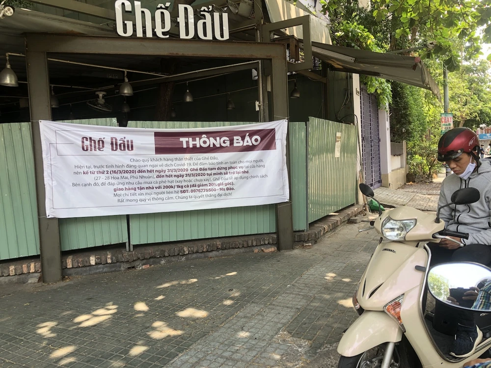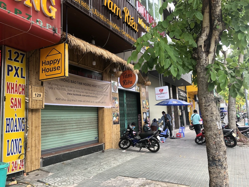 Đến sáng ngày 25-3, dọc các con đường nhộn nhịp ăn uống, cà phê... của thành phố, các cửa hiệu đều đã đóng cửa im lìm, dán bảng thông báo tạm ngưng hoạt động từ chiều ngày 24-3 đến 30-3-2020.