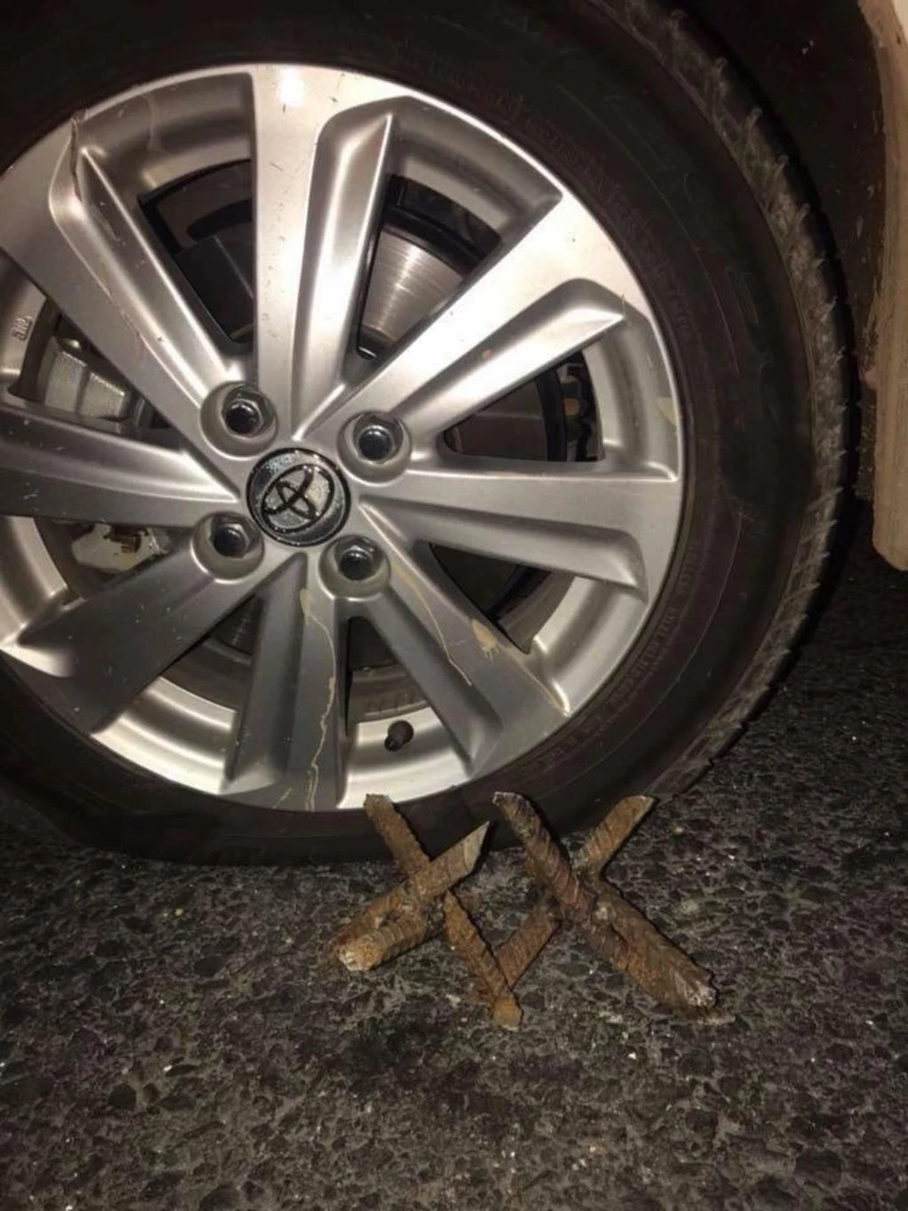 Hàng loạt ô tô dính loại đinh như thế này