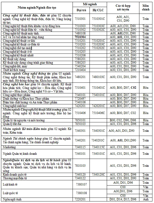 Chi tiết thông tin tuyển sinh từng ngành của Trường ĐH Công nghiệp TP.HCM
