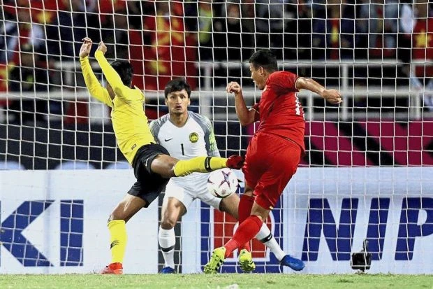 Shahrul Modh Saad người có bàn rút ngắn 1-2 cho Malaysia ở chung kết lượt đi.