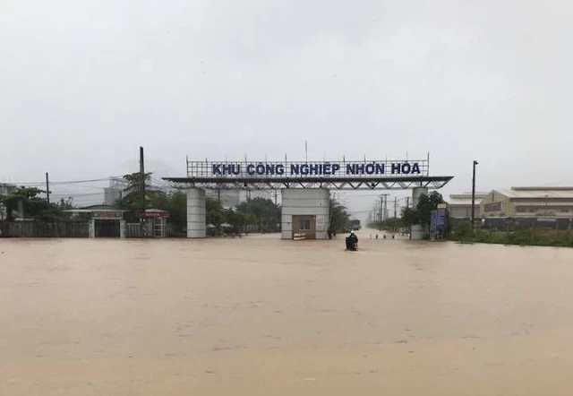Khu công nghiệp Nhơn Hòa (thị xã An Nhơn) bị ngập. Ảnh: TOAN TRAN