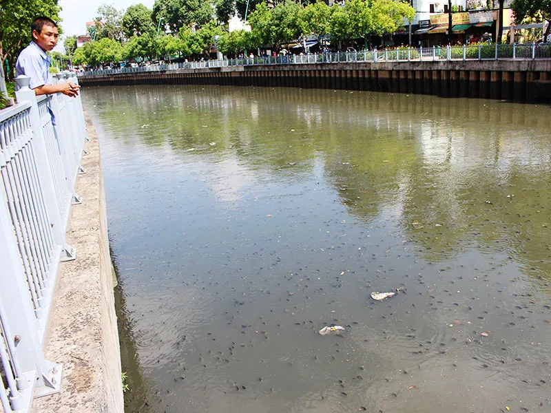Theo đó, sáng nay (22-5), dọc kênh Nhiêu Lộc - Thị Nghè từ cầu số 1 đến cầu số 6 (quận Tân Bình đến quận Phú Nhuận) hàng ngàn con cá nổi đặc dòng kênh.
