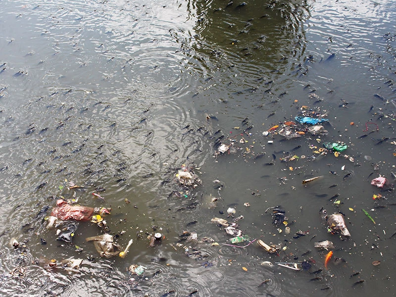 Bên cạnh đó, nhiều rác thải cũng nổi cùng cá ở nhiều điểm trên kênh Nhiêu Lộc - Thị Nghè.