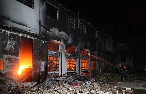 Hỏa hoạn đêm 6-3 tại Công ty SamHo.Ảnh: XUÂN NGỌC