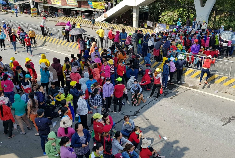 Công nhân đổ ra đường quốc lộ 1A. Ảnh: VH