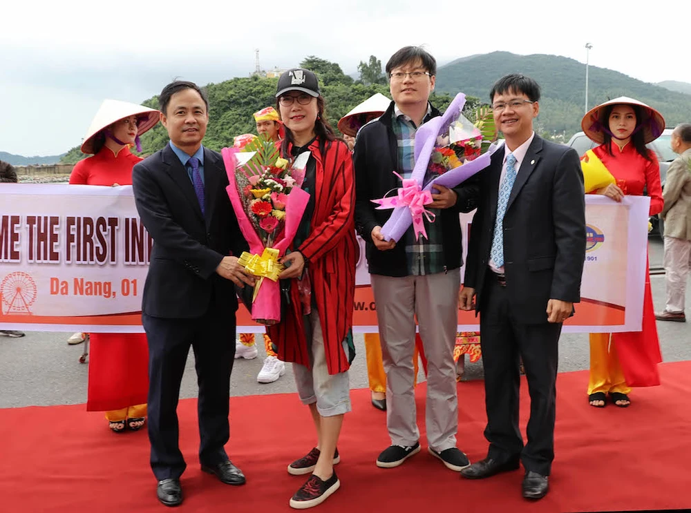 Những du khách đi đường tàu biển đầu tiên "xông đất" Đà Nẵng trong Tết tây năm 2019. Ảnh: NL.