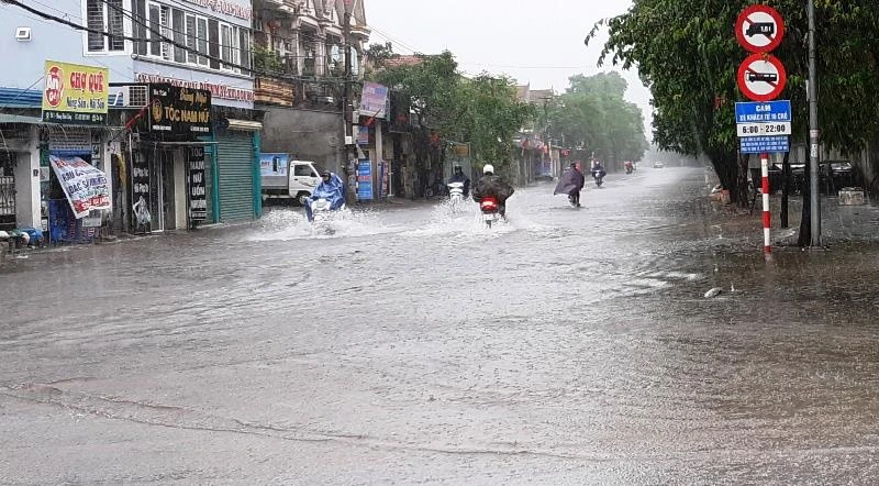Tại Nghệ An, trận mưa lớn sáng và trưa 4-9 đã làm cho nhiều tuyến đường ở TP Vinh ngập úng, ách tắc giao thông.