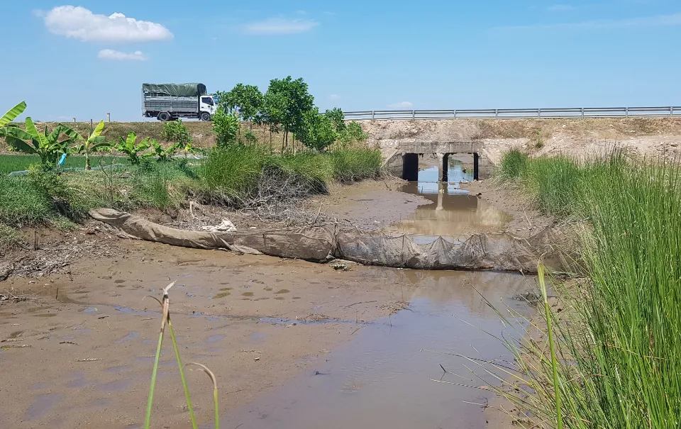 Nhiều kênh dẫn nước tưới tiêu để dưỡng lúa cũng khô cạn.