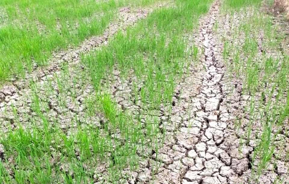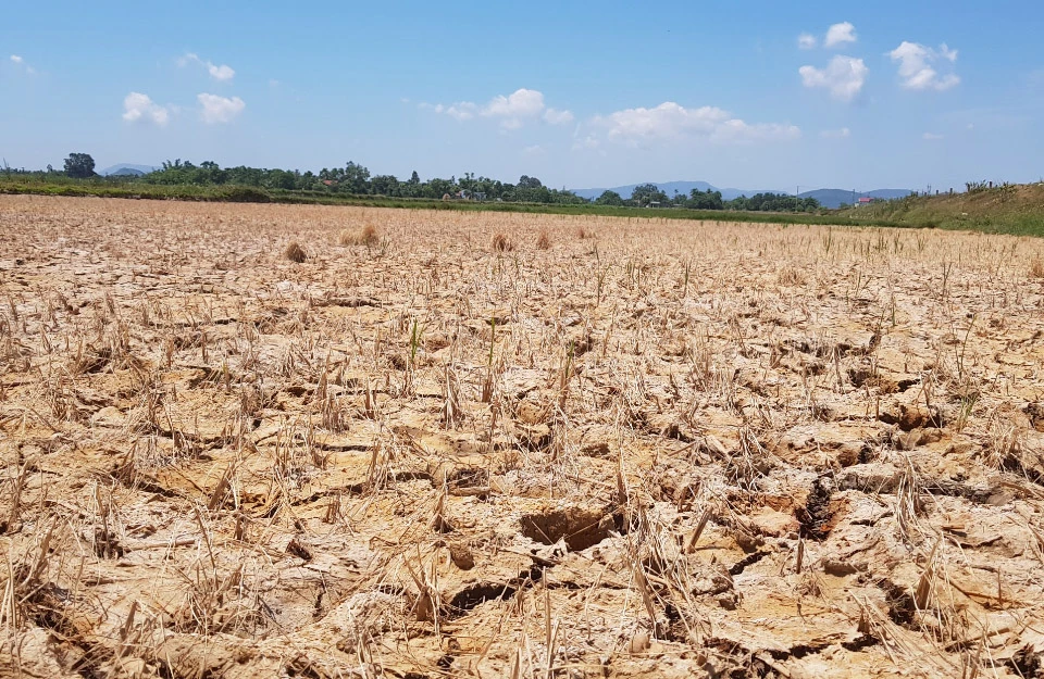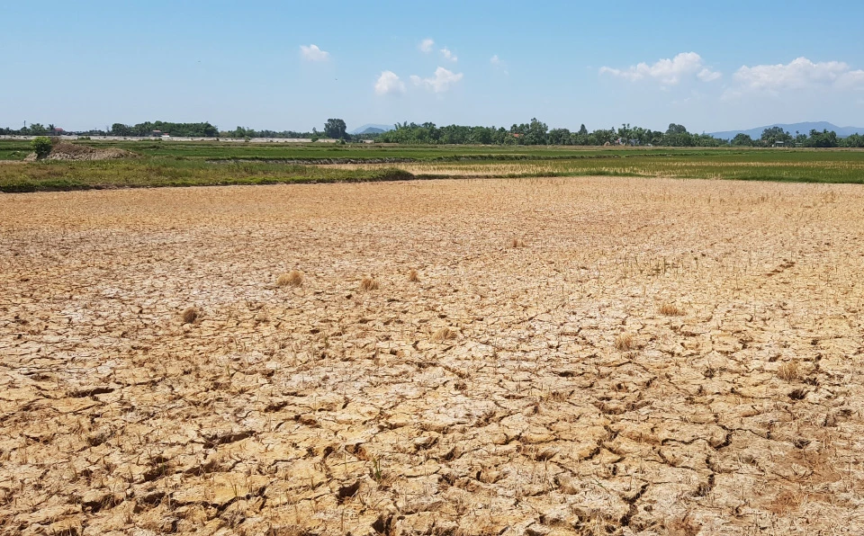 Nắng nóng kéo dài khiến cánh đồng lúa của người nông dân nứt toác, lúa chết khô.