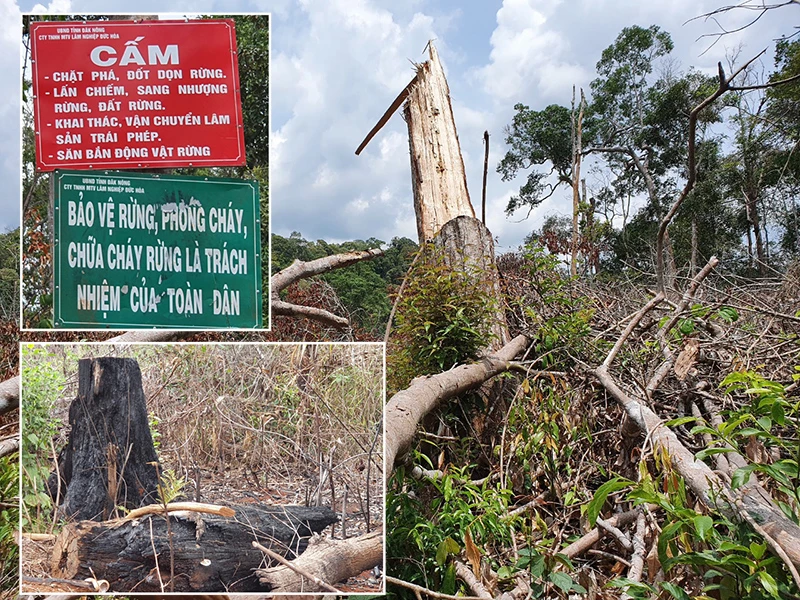 Theo Hạt Kiểm lâm huyện Đắk Song, chỉ riêng trong năm 2019, tính đến cuối tháng 9 xảy ra 136 vụ phá rừng với diện tích hơn 40,8 ha. Trong đó ở huyện Đắk G’long là 106 vụ với gần 32 ha, tại huyện Đắk Song xảy ra 30 vụ với diện tích rừng bị phá hơn 9 ha. Tuy nhiên, chỉ có chín vụ phá rừng được chuyển cơ quan điều tra, khởi tố, còn lại thì lập biên bản 127 vụ, chỉ bảy vụ phát hiện đối tượng.