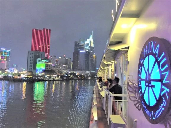 Du khách vừa ăn tối ngắm Sài Gòn từ trên du thuyền Indochina Queen. Ảnh: TÚ UYÊN