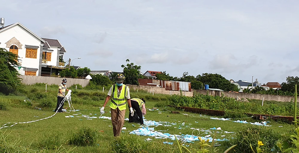 “Chiều qua có mưa và kéo dài đến tối muộn, sáng nay chính quyền địa mới huy động người đến xử lý, thu gom. Thu gom xong chúng tôi sẽ chờ xe rác bên y tế đến chuyển đi hoặc lên phương án đốt bỏ” - ông Thành cho biết.