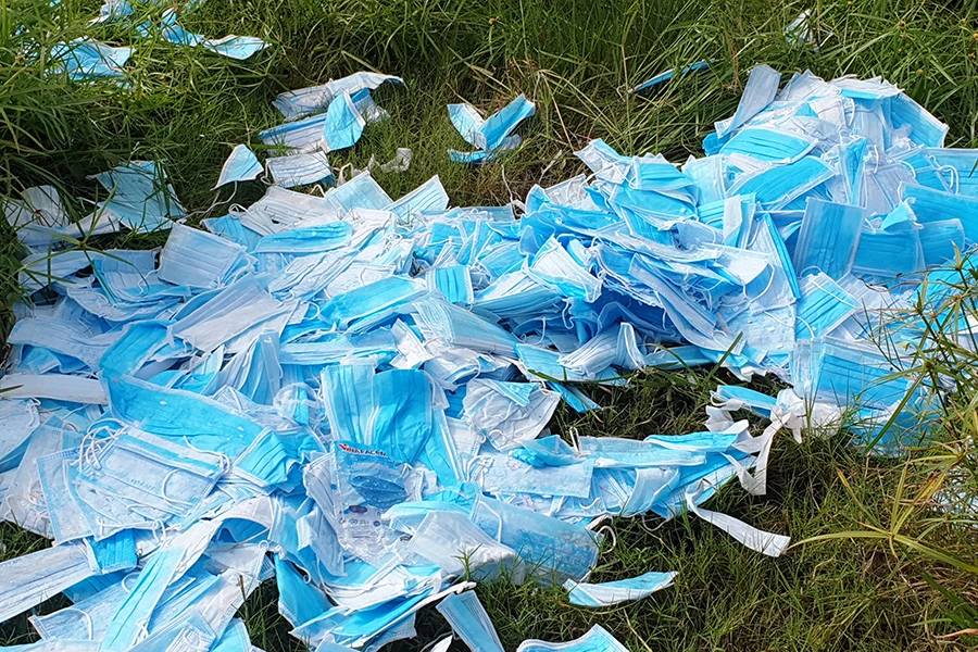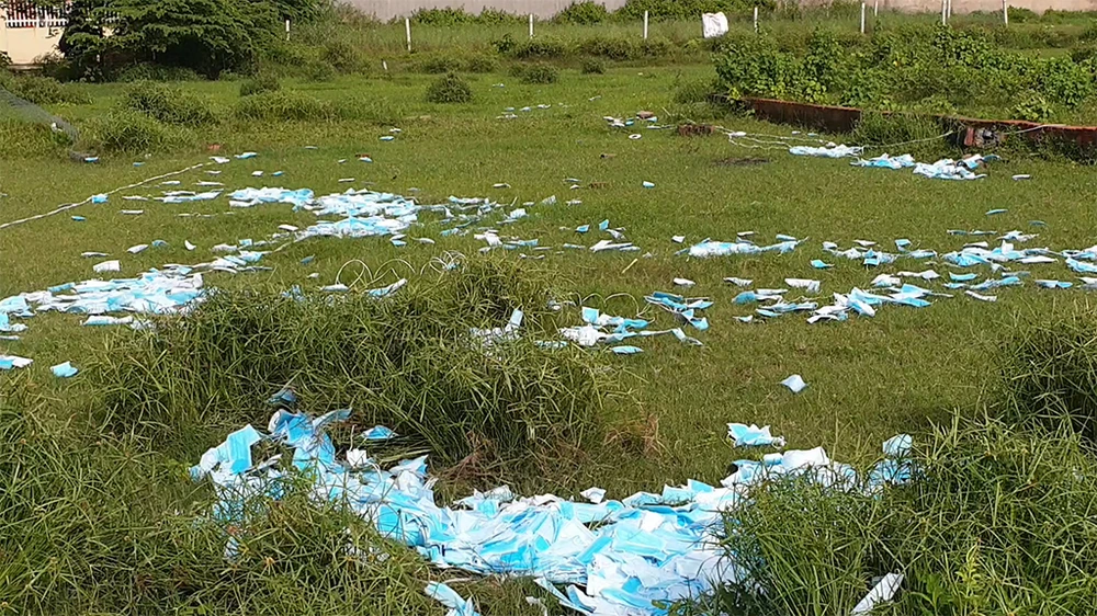 Một số lượng khẩu trang lớn bị vứt bỏ vương vãi khắp nơi. Ảnh: NT