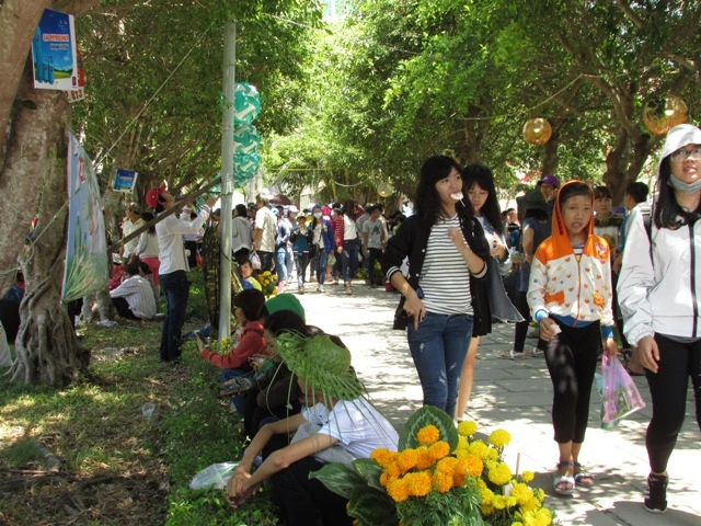 Trong khu vực lễ hội có khá nhiều cây xanh giúp du khách bớt đi cảm giác nóng bỏng vào buổi trưa nắng.