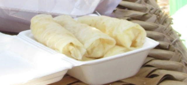 Rồi cuốn lại thế này để ăn, không cần thêm gì nữa. Giá mỗi cái 5.000đ. Đây là đặc sản của phường Thuận Hưng, quận Thốt Nốt (Cần Thơ).